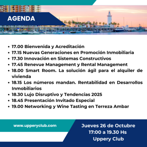 Al finalizar disfrutaremos de un networking y degustación de vino español en la terraza Ámbar 7, de Uppery Club.